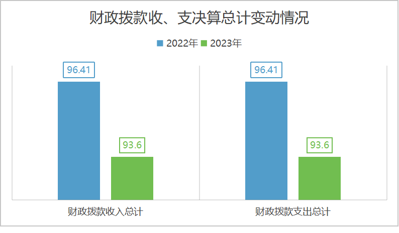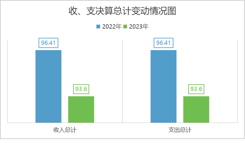 2023年度收、支总计93.6万元。与2022年相比,收、支总计各减少2.81万元,下降2.91%。主要变动原因是2023年编外用工人员减少1人,编外用工人员经费收支减少。