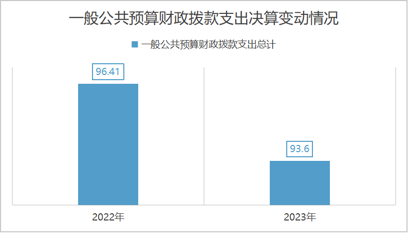 2023年一般公共预算财政拨款支出93.6万元,占本年支出合计的100%。与2022年相比,一般公共预算财政拨款支出减少2.81万元,下降2.91%。主要变动原因是2023年编外用工人员减少1人,编外用工人员支出经费减少。