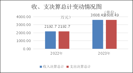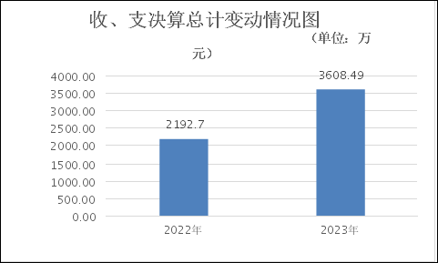 2023年度收、支总计3608.49万元。与2022年相比,收、支总计各增加1415.79万元,增长65%。主要变动原因是2023年新增了医疗救助补助资金1379万元。 |