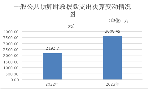 2023年一般公共预算财政拨款支出3608.49万元,占本年支出合计的100%。与2022年相比,一般公共预算财政拨款支出增加1415.79万元,增长65%。主要变动原因是2023年新增了医疗救助补助资金1379万元。 |