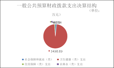 2023年一般公共预算财政拨款支出3608.49万元,主要用于以下方面:社会保障和就业支出61.34万元,占1.7%;卫生健康支出3498.89万元,占97%;农林水支出3.51万元,占0.1%;住房保障支出44.76万元,占1.2%。