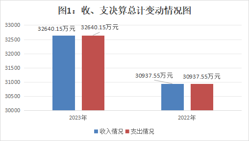 2023年度收、支总计32640.15万元。与2022年30937.55万元相比,收、支总计各增加17022.6万元,增长6%。主要变动原因是疫情结束、仁寿县禁毒委员会办公室经费在我局公开,及项目经费增加。