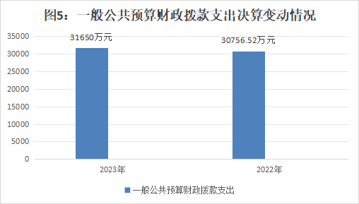 2023年一般公共预算财政拨款支出31650万元,占本年支出合计的97%。与2022年30756.52万元相比,一般公共预算财政拨款支出增加893.48万元,增长3%。主要变动原因是疫情结束、仁寿县禁毒委员会办公室经费在我局公开,及项目经费增加。