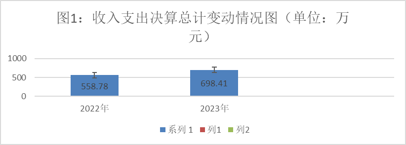 2023年度收、支总计698.4万元。与2022年相比,收、支总计各增加139.63万元,增长25%。主要变动原因是人员工资福利和社会保障缴费增加。