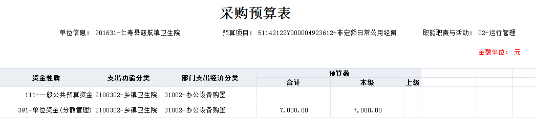 根据仁寿县慈航镇卫生院实际情况和日常工作需要,2025年预算安排自有资金0.7万元,用于采购办公设备、办公家具以及医疗设备等。