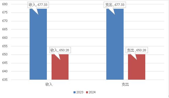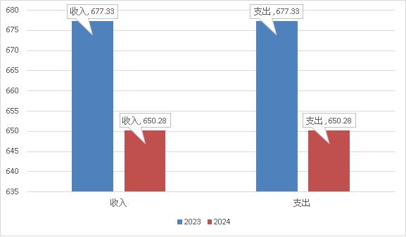 2024年度收入、支出总计均为650.28万元。与2023年度相比,收入、支出总计各减少27.05万元,下降3.99%。主要变动原因是压减了开支。