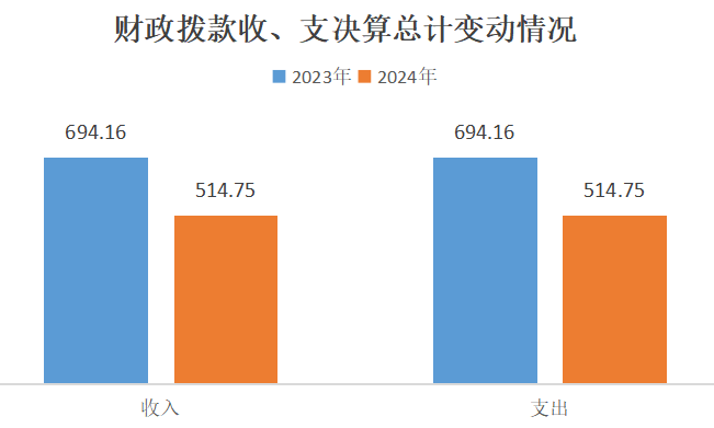 2024年度财政拨款收入、支出总计均为514.75万元。与2023年度相比,财政拨款收入总计、支出总计各减少179.41万元,下降25.8%。主要变动原因是2024年年初预算结合供销社综合改革进度,减少了综合改革项目开支,压缩了公用经费。