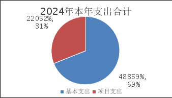 2024年本年支出合计709.11万元,其中:基本支出488.59万元,占69%;项目支出220.52万元,占31%;上缴上级支出0万元,占0%;经营支出0万元,占0%;对附属单位补助支出0万元,占0%。