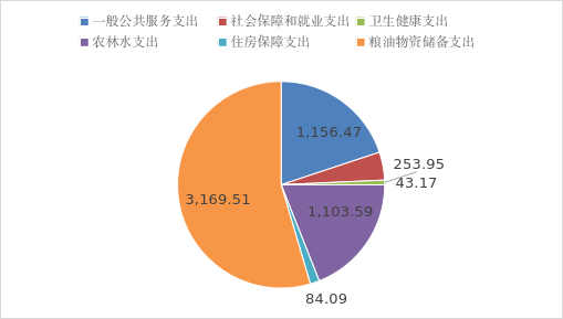 2024年度一般公共预算财政拨款支出5810.77万元,主要用于以下方面:一般公共服务支出1156.47万元,占19.9%;社会保障和就业支出253.95万元,占4.37%;卫生健康支出43.17万元,占0.74%;农林水支出1103.59万元,占18.99%;住房保障支出84.09万元,占1.45%;粮油物资储备支出3169.51万元,占54.55%。