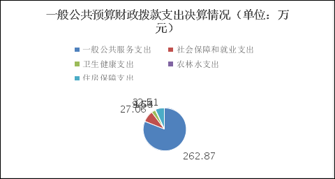 2024年度一般公共预算财政拨款支出323.63万元,主要用于以下方面:一般公共服务支出262.87万元,占81.2%;社会保障和就业支出27.06万元,占8.4%;卫生健康支出9.66万元,占3%;农林水支出1.54万元,占0.4%;住房保障支出22.51万元,占7%。