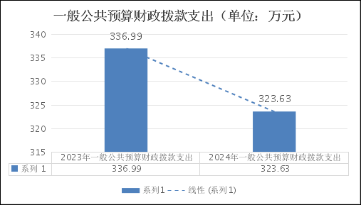 2024年度一般公共预算财政拨款支出323.63万元,占本年支出合计的100%。与2023年度相比,一般公共预算财政拨款支出减少13.36万元,下降4%。主要变动原因是2024年项目经费支出减少、2023年追加退休人员离退休费等。