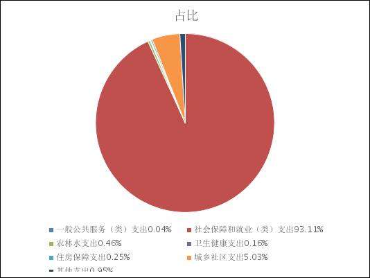 2024年度一般公共预算财政拨款支出36067.29万元,主要用于以下方面:一般公共服务(类)支出14万元,占0.04%;社会保障和就业(类)支出33580.46万元,占93.11%;农林水支出166.46万元,占0.46%;卫生健康支出58.56万元,占0.16%;住房保障支出91.70万元,占0.25%;城乡社区支出1812.4万元,占5.03%;其他支出343.72万元,占0.95%。
