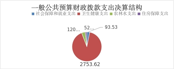 2024年度一般公共预算财政拨款支出3020.20万元,主要用于以下方面:社会保障和就业支出93.53万元,占3.09%;卫生健康支出2753.62万元,占91.17%;农林水支出120.83万元,占4%;住房保障支出52.21万元,占1.73%。