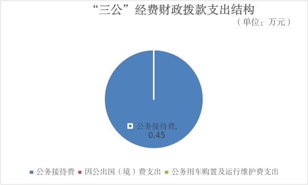 2024年度“三公”经费财政拨款支出决算中,因公出国(境)费支出决算0万元,占0%;公务用车购置及运行维护费支出决算0万元,占0%;公务接待费支出决算0.45万元,占100%。具体情况如下: