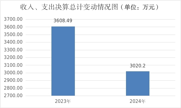 2024年度财政拨款收入、支出总计均为3020.20万元。与2023年度相比,财政拨款收入总计、支出总计各减少588.29万元,下降16.30%。主要变动原因是抗疫物资项目支出减少。