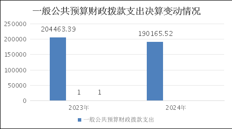 2024年度一般公共预算财政拨款支出190165.52万元,占本年支出合计的99.6%。与2023年度相比,一般公共预算财政拨款支出减少14297.87万元,下降7.52%。主要变动原因是项目经费减少。
