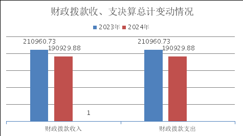 2024年度财政拨款收入、支出总计均为190929.88万元。与2023年度相比,财政拨款收入总计、支出总计各减少20030.85万元,下降10.49%。主要变动原因是项目经费减少。