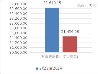 2024年度财政拨款收入、支出总计均为31,456.08万元。与2023年度相比,财政拨款收入总计、支出总计各减少1184.07万元,下降3.63%。主要变动原因是仁寿县公安局本级项目支出减少导致。