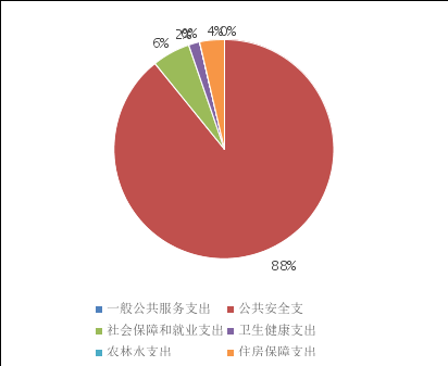 2024年度一般公共预算财政拨款支出30,214.15万元,主要用于以下方面:一般公共服务支出3.99万元,占 0.01 %; 公共安全 支出26,955.57万元,占 89.22 %;社会保障和就业支出1,690.10万元,占 5.59 %;卫生健康支出491.43万元,占 1.63 %; 农林水 支出1.30万元,占 0.00 % ; 住房保障支出1,071.75万元,占 3.55 %。