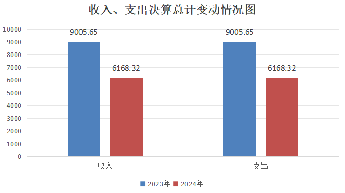 2024年度收入、支出总计均为6168.32万元。与2023年度相比,收入、支出总计各减少2837.33万元,下降31.51%。主要变动原因是厉行节约、项目减少。