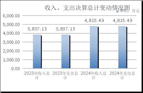 2024年度收入总计为4815.49万元,支出总计为4815.49万元。与2023年度相比,收入总计增加978.36万元,增加25.50%;支出总计增加978.36万元,增加25.50%。主要原因是人员经费增加。