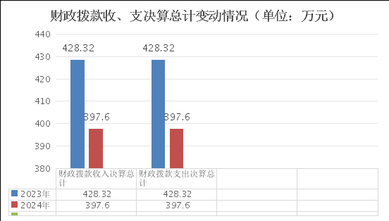 2024年财政拨款收入总计397.6万元,支出总计397.6万元。与2023年相比,财政拨款收、支总计各减少30.72万元,下降7.73%。主要变动原因是2024年有一名在编人员辞职,减少了人员经费。