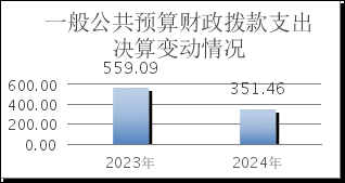 2024年度一般公共预算财政拨款支出351.46万元,占本年支出合计的100%。与2023年度相比,一般公共预算财政拨款支出减少207.63万元,减少37.14%。主要原因是教师人数减少和学生人数减少。