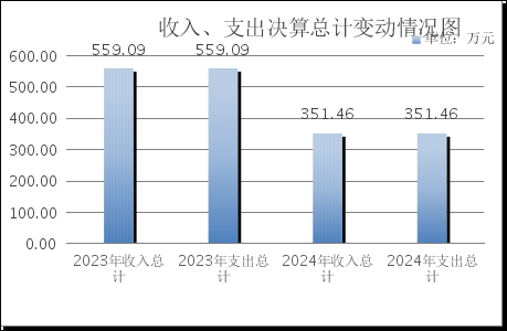 2024年度收入总计为351.46万元,支出总计为351.46万元。与2023年度相比,收入总计减少207.63万元,减少37.14%;支出总计减少207.63万元,减少37.14%。主要原因是教师人数减少和学生人数减少。