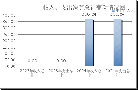 2024年度收入总计为366.84万元,支出总计为366.84万元。与2023年度相比,收入总计增加366.84万元,增加100%;支出总计增加366.84万元,增加100%。主要原因是我校为新建幼儿园,经费大幅增长。