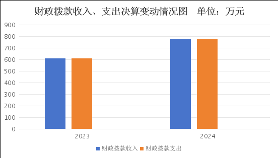 2024年财政拨款收入总计771.94万元、支出总计771.94万元。与2023年相比,财政拨款收入增加164.63万元、增长27.1%,支出总计增加164.63万元,增长27.1%。主要变动原因是财政拨款公共卫生费用及人员经费增加。