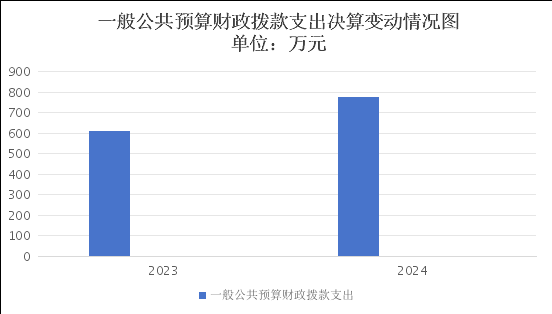 2024年一般公共预算财政拨款支出771.94万元,占本年支出合计的30.07%。与2023年相比,一般公共预算财政拨款支出增加164.63万元,增加27.1%%。主要变动原因是财政拨款公共卫生费用及人员经费增加。