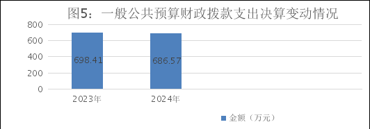 2024年一般公共预算财政拨款支出686.57万元,占本年支出合计的100%。与2023年相比,一般公共预算财政拨款支出减少11.83万元,减少1.72%。主要变动原因是社会保障缴费和卫生健康费减少。