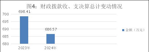 2024年财政拨款收、支总计686.57万元。与2023年相比,财政拨款收、支总计各减少11.83万元,减少1.72%。主要变动原因是社会保障缴费和卫生健康费减少。