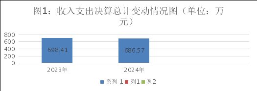 2024年度收、支总计686.57万元。与2023年相比,收、支总计各减少11.83万元,减少1.72%。主要变动原因是社会保障缴费和卫生健康费减少。