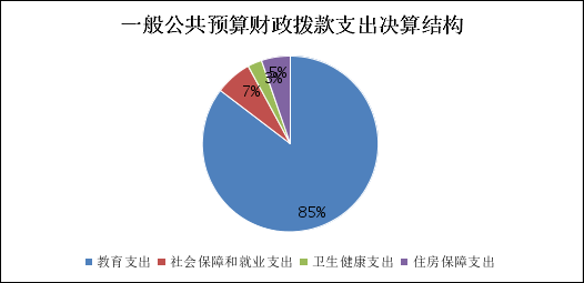 2024年度一般公共预算财政拨款支出623.46万元,主要用于以下方面:教育支出532.33万元,占85.38%;社会保障和就业支出41.21万元,占6.61%;卫生健康支出16.94万元,占2.72%;住房保障支出32.98万元,占5.29%。