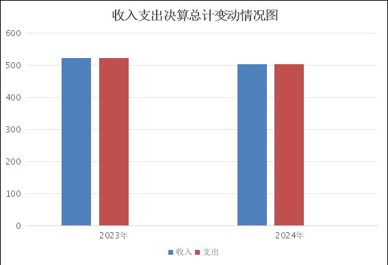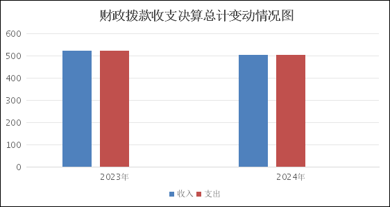 2024年度财政拨款收入、支出总计均为502.72万元。与2023年度相比,财政拨款收入总计、支出总计各减少19.26万元,减少3.69%。主要变动原因是人数减少,经费收支减少。