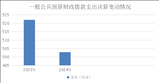 2024年度一般公共预算财政拨款支出502.72万元,占本年支出合计的100%。与2023年度相比,一般公共预算财政拨款支出减少19.26万元,减少3.69%。主要变动原因是人数减少,经费收支减少。