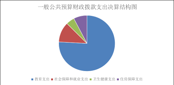 2024年度一般公共预算财政拨款支出502.72万元,主要用于以下方面:一般公共服务支出0万元,占0%;教育支出380.6万元,占75.71%;科学技术支出0万元,占0%;文化旅游体育与传媒支出0万元,占0%;社会保障和就业支出59.13万元,占11.76%;卫生健康支出24.16万元,占4.81%;住房保障支出38.83万元,占7.72%。
