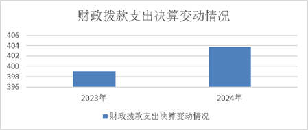 2024年度财政拨款收入、支出总计均为403.77万元。与2023年度相比,财政拨款收入总计、支出总计各增加4.73万元,增长1.19%。主要变动原因是调整工资。