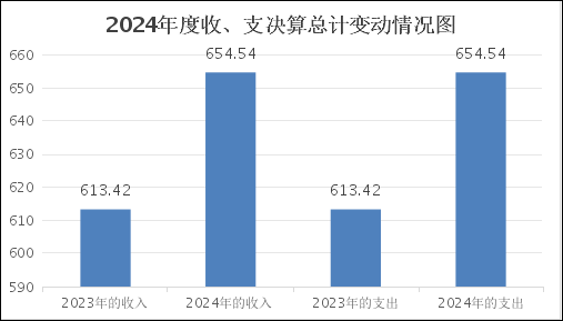 2024年度收入、支出总计均为654.54万元。与2023年度相比,收入、支出总计各增加41.12万元,增长6.70%。主要变动原因是教职工工资增加、保障性支出增加、学校校园环境的改善和学校校园文化的建设投入增加。