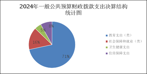 2024年度一般公共预算财政拨款支出654.54万元,主要用于以下方面:教育支出468.59万元,占71.59%;社会保障和就业支出102.16万元,占15.61%;卫生健康支出30.51万元,占4.66%;住房保障支出53.27万元,占8.14%。