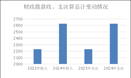 2024年度财政拨款收入、支出总计均为2624.12万元。与2023年度相比,财政拨款收入总计、支出总计各增加395.89万元,增长17.77%。主要变动原因是人员工资增加及财政对教育投入增加。
