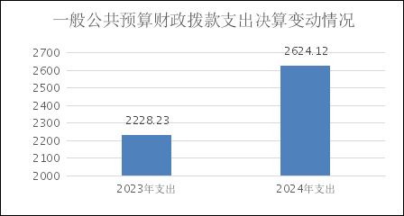 2024年度一般公共预算财政拨款支出2624.12万元,占本年支出合计的100%。与2023年度相比,一般公共预算财政拨款支出增加395.89万元,增长17.77%。主要变动原因是人员工资增加及财政对教育投入增加。