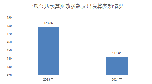 2024年度一般公共预算财政拨款支出442.04万元,占本年支出合计的33.42%。与2023年度相比一般公共预算财政拨款支出减少36.32万元,下降7.59%。主要变动原因是项目经费拨款减少。