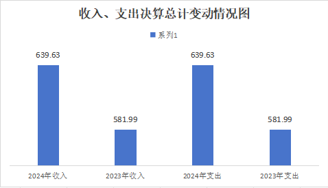 2024年度收入、支出总计均为639.63万元。与2023年度相比,收入、支出总计各增加57.64万元,增长9.90%。主要变动原因是人员增加、教师工资提高、目标奖提高。