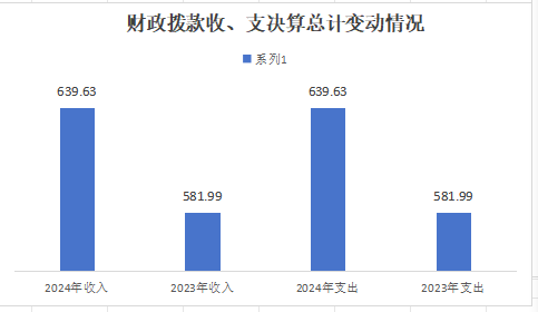2024年度财政拨款收入、支出总计均为639.63万元。与2023年度相比,财政拨款收入总计、支出总计各增加57.64万元,增长9.90%。主要变动原因是人员增加、教师工资提高、目标奖提高。