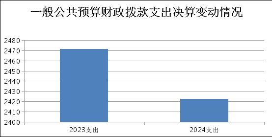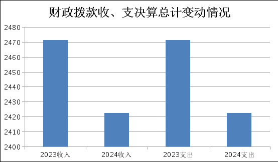 2024年财政拨款收、支总计2422.54万元。与2023年(2471.21)相比,收、支总计各增加48.67万元,减少1.97%。主要变动原因是教职工人数减少。