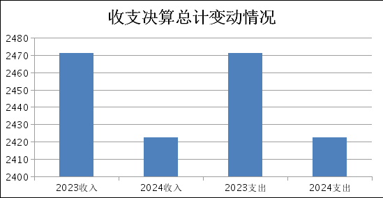 2024年度收、支总计2422.54万元。与2023年(2471.21)相比,收、支总计各增加48.67万元,减少1.97%。主要变动原因是教职工人数减少。