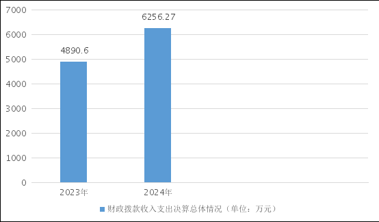 2024年度财政拨款收入、支出总计均为6256.27万元。与2023年度相比,财政拨款收入总计、支出总计各增加1365.67万元,增加27.92%。主要变动原因是教师人数增加和“三名工程”建设支出。