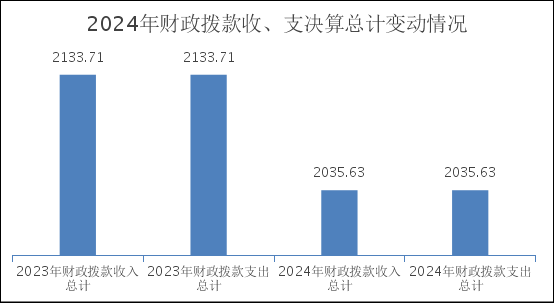 2024年度财政拨款收入总计为2035.63万元,财政拨款支出总计为2035.63万元。与2023年度相比,财政拨款收入减少98.08万元,减少4.60%;支出总计减少98.08万元,减少4.60%。主要人员类经费减少。